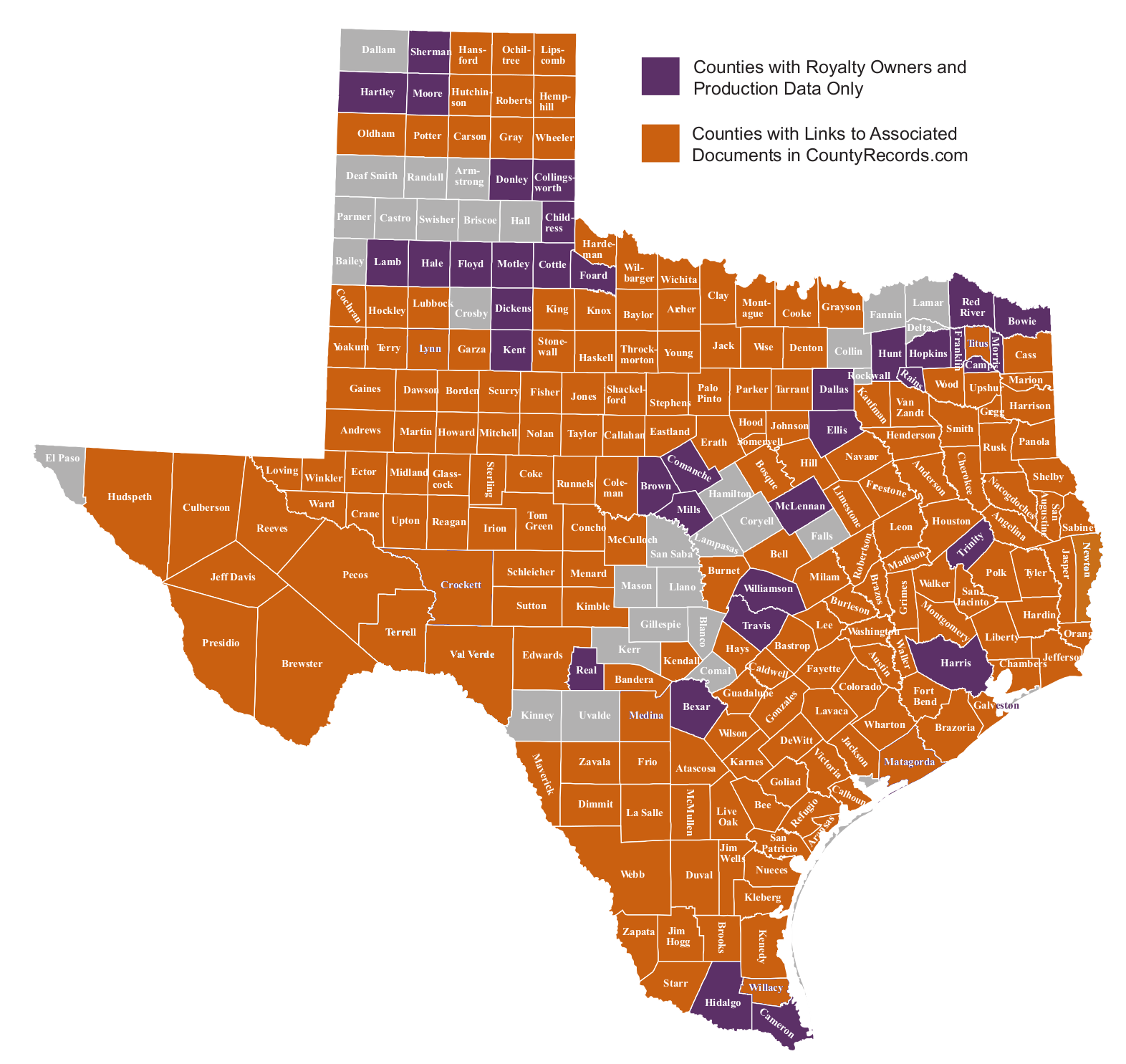 MineralRecords.com is an integrated resource for identifying and locating royalty owners and operators throughout Texas.  Intuitively designed so you can build a complete profile of mineral leases online from your desktop with a single login.